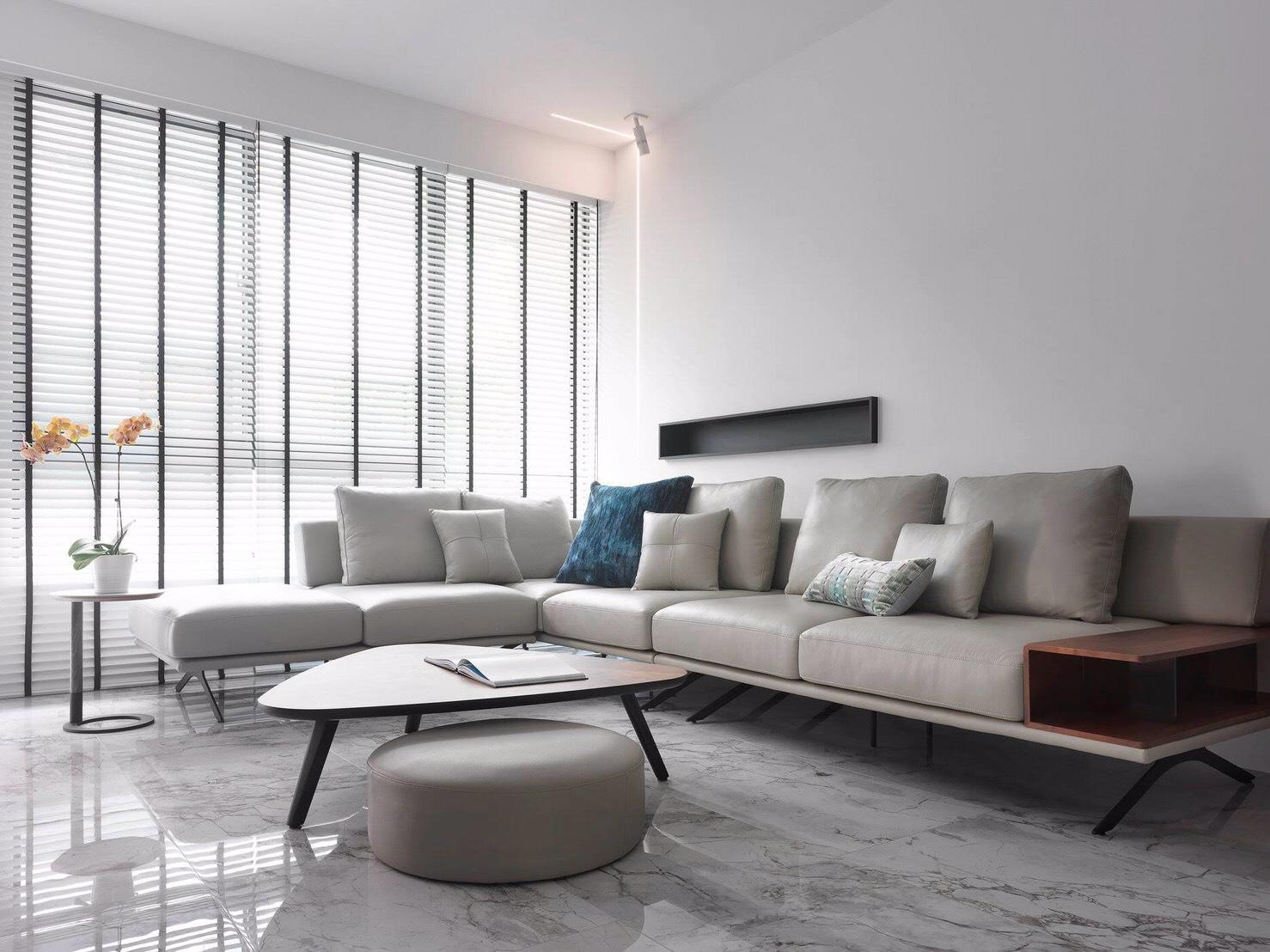 Minimalismo, luminosidad y funcionalidad definen el proyecto de interiorismo desarrollado por Zinarea Interior Design en un apartamento privado de Taichung, en Taiwán, donde el modelo Portobello de ITT Ceramic tiene un protagonismo destacado, ya que ha sido aplicado como pavimento y como revestimiento en diferentes espacios de esta sencilla y coqueta vivienda familiar. Concretamente, Portobello se ha colocado en formato 60×120 en el suelo del salón principal, mientras que en formato 120×120 se ha instalado en la pared de la zona de televisión.